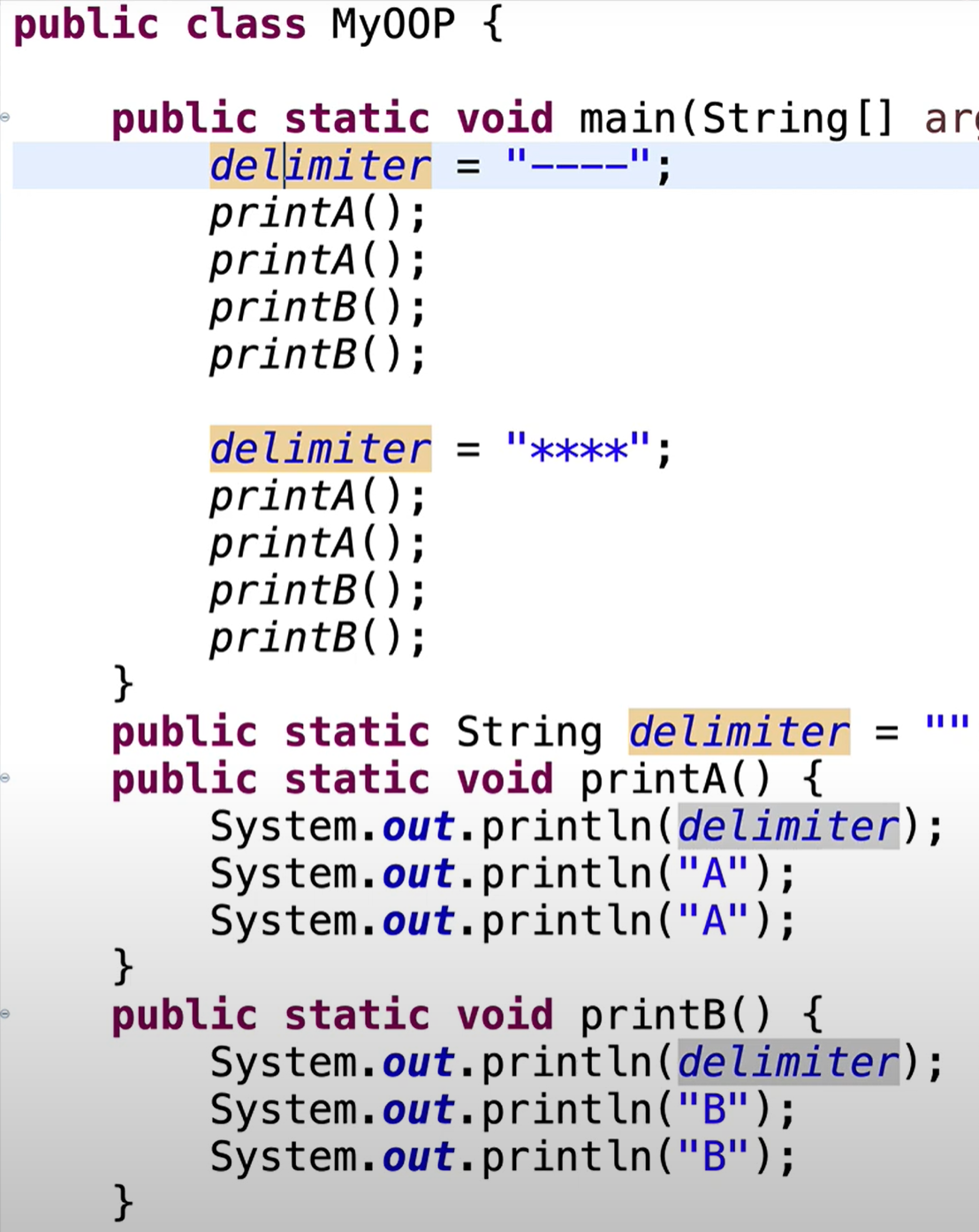 System.out.println(delimiter);